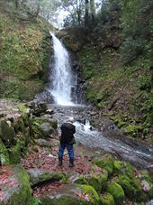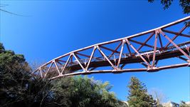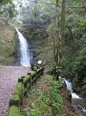 2025/12/30 不動滝(5M?) 石川県加賀市 一乗滝(12M) 福井県福井市 毎年年末に夫婦で慰安温泉旅行に出かける。 この年は、石川県の山中温泉に宿が取れたので、そちらの観光を考えていた。 なにせ、慰安旅行である。 ほぼ、何もする気がない。 せいぜい近場の滝で滝納め、近場の低山で山納めをしよう、という感じである。 ただ、花が群生しているのが好きな我々、前々から福井県越前岬のスイセンの群生は気になっていた。 山中温泉であれば、石川県でもどちらかといえば福井県寄りである。 越前岬まで行くのはそれほど大変な道のりではないだろう。 では、今回の慰安ドライブのルートは、山中温泉周辺を散策して宿泊。翌日、越前岬まで行くというのでいいんじゃないか。 かなりアバウトな予定をたてて、新潟を出発した。 年末年始の天気予報は、比較的あまりよくない日本海側だったが、出発した12月29日は見事なまでの快晴。 遠くの山々が白く見えるが、道路状況は快適。 ストレスなくドライブできる。 左から、妙高、火打、焼山がそろっている。 これは富山県に入って、立山連峰方向を撮影。 正午少し過ぎてから山中温泉に到着。 まだ宿に行くには早いので、山中温泉内にある鶴仙渓に行くことにした。 我々は上流のこおろぎ橋から遊歩道を歩くつもりでいたのだが、ナビが案内してくれたのがあやとり橋。ここに駐車できるスペースないでしょおお、と思っていたら、ちゃんとありましたよ、駐車場。 10台はとめられると思う。 あまりにスタンダードで、しかも温泉街から少し細かい道を行かなくてはならないので、ほぼ駐車されていない。実は穴場の駐車場かも、と思った。 あやとり橋を渡り、遊歩道に下りる。 真冬は川床は無かった。あ、ダイモンジソウの咲き残り。 あずまやがあったんだけど、その中に謎の生き物。 来年は馬年なので、馬か? いやいや、馬に角は無いだろう。蛇に足があるみたいにさえ見える。 あやとり橋からすぐに不動滝が落ちている。 この滝の前には、真冬以外は赤い和傘の下でスイーツなどが頂ける川床があるのだが、さすがに12月では椅子さえなかった。 不動滝は水量も多く、ザバザバ落ちていてくれたけど。 こおろぎ橋まで歩くつもりではあったが、谷間は日陰になってちょっと寒かった。 歩いても花もないし、鳥もいないし。 ということで、あずまやの場所で戻ってしまった。 さて、この日は山中温泉で宿泊するのだが、まだ午後に入ってすぐくらいの時間。 で、山納めとして、すぐ近くの水無山に登ることにした。 標高344メートルの山ということで、楽々登山だと思い込んでいたけど、ガッツリ登山でしたよ。 (登山のレポはこちら) 思いがけずへとへとになった我々、すぐ川向いの山中温泉の宿に行き、ゆっくり温泉に浸かりましたとさ。 さて、翌日。 この日は最終目的地の越前岬に向かう日である。 山中温泉から国道364号を南下すると福井県に入るちょっと前に「簾滝」という滝がある。 これは道沿いだからちょっと立ち寄れるね、と言っていたら、見事に通り過ぎた。 本当に道沿いにドバドバと落下する水流があったのだが、それが滝なのか水門みたいなものなのか、通り過ぎる時点ではまったく分からなかった。 たいてい、道沿いの滝には滝名のある看板くらいあるので、まさか通り過ぎるとは思わなかったのだが、ホントに何も案内がなく、まさか滝とは思わなかった。 気がついたら、福井県に入ってしまっていた。 残念。 そこからさらに南下。永平寺を通り過ぎると、一乗谷になる。 ここに一乗滝があり、ずいぶんと前に立ち寄ったことがあった。 この滝はさすがに見落とすことはない。 朝倉氏の遺跡の前を通り、山の中に入って行く。 あれは、何年前だったかな。2006年なので、20年も前になる。 百選の滝である龍双ケ滝と一緒に見に来たことがある。 なんだか、印象が狭い場所にある滝、みたいな感じなのだが。 駐車場に入れる。 歩いて行くと、ほどなく、佐々木小次郎の像があり、そこから遠くに滝が落ちていた。 こんな滝だったっけな。 真冬のこと、滝を訪れる人はほとんどなく、前に来ていた人とすれ違ったら、滝前は我々だけになった。 うーむ、こんな滝だったっけな。 水流豊富な直瀑がどうどうと落ちている。 河原に行って滝壺すれすれまで行くことができる。 ここで修行して「つばめ返し」を取得した佐々木小次郎は、いったいどんな修行をしたのやら。 あとで20年前のレポを見たら、その時は工事中だったそうで、その工事の隙間から見た滝の印象しかないので、狭い場所の印象が残っていたのだ。 これで、一乗滝の印象がちょっとよく塗り替えられた。 あとは、越前岬まで自動車を走らせる。 スイセンが海を見下ろす映像などはよく見ていて、前々から興味があった。 せっかく福井県の近くに泊まるのだから調べてみたら、今年は暖かい日が続いたので開花が早く、12月でも見ごろだという記事があった。 ならば見てみたい。 