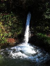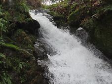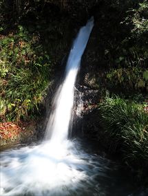 不動滝 あやとり橋から見下ろすと、 夏場なら赤い傘の川床が見える。 そこに落ちている滝が不動滝。 滝好きにしてみれば、鶴仙渓の一番の 見どころだと思うのだが、 名前さえ書かれていないのが残念。 滝前を右欄のような丸い石で 渡れるようになっている。 その石の上から撮影した図。 一乗滝 遊歩道の一番端っこから撮影。 直瀑に分類されるが、 水流は綺麗に分岐している。 これは一段下った水面すれすれに立って 撮影した滝。 より分岐具合が分かる。 やや下流からの図。 大きさ比較。 こんな感じで滝に近づける。 滝壺もすぐそば。 落ち口。 ちょっと水が跳ねている。 滝壺付近。 遊歩道はちょっと上にある。 下流にも一段滝がある。 |