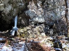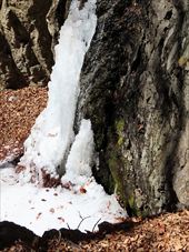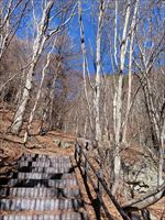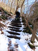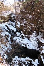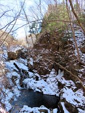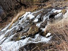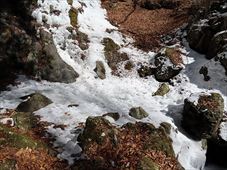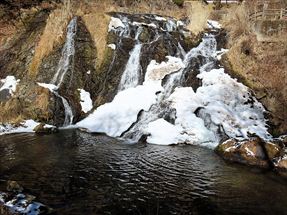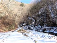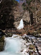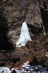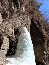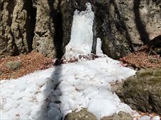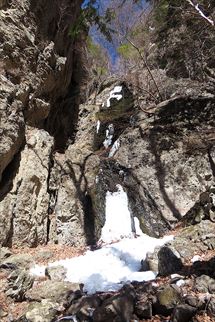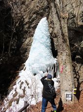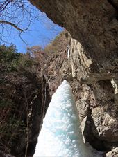 2026/2/21 箱瀬の滝(10M) 大禅の滝(30M) 長野県北相木村 犬ころの滝(10M) 立岩の滝(15M) おみかの滝(24M) 南相木村 毎週ごとの大雪で週末の外出を控えさせられたこの冬。 気がつくと2月も半ばを過ぎ、なんと天皇誕生日の三連休には最高気温20度を越えるかもしれないという、異常な暖気の予報が出されていた。 こりゃ、今年は氷瀑は諦めざるを得ないな。 あるとしたら、かなり北か、かなり標高の高い場所か。 いや、今年最後の氷瀑となれば、賭けに出るよりは定番で安心感のある氷瀑がいいだろう。 と、いうことで、長野県の北相木村と南相木村の氷瀑たちを見に行くことにした。 たぶん、多少規模が貧弱でも、大禅の滝の氷瀑は裏切らないだろう。 午前7時過ぎ、見事に晴れ上がった新潟を出発し、妙高や火打ちの美しい姿を見ながら高速道路を長野に向かう。 高速道路から見た妙高、火打。 午前10時40分頃箱瀬の滝に到着。 もちろん、今年の暖かさでは鍋蓋こと蓮氷は望めないと分かっていてもご挨拶。 相変わらず日陰の中に落ちている滝だけど、まあ、崖崩れがさらに酷くなっていたりしないのだけが救いだ。 自動車を先に進め、大禅の滝の駐車場に到着したのは、11時少し前。 車を下りるなり、あったかいと感じる。 さすがに氷瀑の最もいい時期を逸してしまっているので、駐車場には1台も駐車していない。 ってことは、独占じゃん。 いつもであれば、凍結している遊歩道を警戒してピン付きの長靴なのだが、今年はどうする? なにせ、見える範囲、ほぼ土と落ち葉だけで、ちっとも冬らしくない景色なのだ。 でも、一応滝の周りとか凍っていたら危ないから、長靴にしておくか。 ということで、長靴に履き替えて遊歩道を登り始めた。 遊歩道はこんな感じ。雪も氷も無い。 いや、ホント。最初から最後まで落ち葉を踏みしめる、雪も氷もまったくない遊歩道でしたよ。 さて、この暖気で大禅の滝はどうなっているだろう。 まさか、氷が崩落してはいないだろうか。 川の上流、木々の間に、遠くではあるが、白い物体が太陽に照らされた光っているのが見えた。 ああ、大丈夫だ。まだ立っている。 完全に上とつながっている時に比べたら三分の二くらいの高さではあるが、ちゃんと氷瀑でいてくれている。 林の向こう側にある白いのか大禅の滝です。。 雪のない場所に長靴では歩きづらかったのだが、滝前まで急ぎ、今年も松かさに対面した。 いやぁ、大禅の滝は裏切らない。 多少小さくてもこの松かさの奥の輝くブルーは他にない美しさだ。 よくよく見れば、氷の一つ一つが丸みをおびて、溶けかかっているのがわかる。 この連休を過ぎたら、きっと姿を消してしまうんだろうなぁ。 誰もいないので、滝のそばまで行くこともできただろうが、それはやめておいた。 どれほど雪の下が緩んでいるかもわからないし、そもそも滝自体が崩れる危険性だってあるのだ。 とりあえず遊歩道内で右岸左岸と歩き回り、今年の冬の顔になってもらう滝を撮影した。 下流から近づく。 下の流れも凍っている。 やっぱりいい形だわね。 下流、流れているように見えるが、凍っている。 落ち口からの距離の別方向から。 滝の右岸の氷柱も細々しちゃっている。 大きさ比較。 よいお天気でしたよ。 戻る途中に、一人だけ男性が滝にやって来ていた。 小禅の滝に行こうとする我々にこの先には何があるのかと聞いてきた。 小さな滝だと答える。たぶん、凍っていない、とも。 じゃあやめよう、とあっさり男性は小禅を諦めてしまった。こらこら。 さて、我々は一応小禅の滝にもご挨拶に行こう。 たぶん凍っていないのは予測でした。 さらに小禅の滝そばにある氷筍もないだろうのは予測でした。 でも、ひいひい言いながら階段を登り、会いに来ましたよ、とごあいさつ。 多少下のほうには氷は残っていたけどね。 氷筍はホントーに欠片もなかったけどね。 また来年会いましょう。 続いて、南相木村に向かう。 実は昨年、南相木村でダムカレーを出してくれるお店で昼食をとったので、今年もそこで食べるつもりだったのだ。 ところが、閉まってましたとさ。しくしく。 臨時休業なのか、それとも完全閉店なのかは分からない。 ちょっと残念。 ってか、どーすんの、お昼。 とりあえず、犬ころの滝方面に進む。 どこかに、お昼を食べられそうなところがないか。 ないんですよ、南相木村。 唯一、滝見の湯という温泉施設で食べられそうだったのだが、温泉に入らないでご飯だけというのがためらわれて、そばの滝だけ見てお昼は我慢した。 あとは速攻で他の滝を攻めて、国道141号の小海町まで出て飲食店を探そう。 まあ、南相木村の滝たちもほぼ凍っていないので、見る時間は少なくてすむ。 犬ころの滝の下流は、立岩の滝。 道路わきの少し広くなっている場所に自動車をとめて、階段を下る。 帰りに撮った遊歩道の雪の具合。 うーむ。 まったく凍っていないワケではない。 だが、なんか、雪のほうが多い感じだ。 