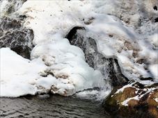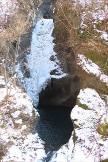 箱瀬の滝 できるだけアップにしてみた。 コントラスト強すぎて、 滝を中心にしたら、こうなりましたよ。。 大禅の滝 本年の見ごろをちょっと過ぎた大禅の滝。 下のほうなんか、氷が丸いでしょ。 そろそろ寿命かも。 でも、松かさのブルーは健在。 ほら、綺麗。 落ち口からの距離はこんな感じ。 あったかい日でしたが。 太陽を浴びてなお冷たく輝く。 足元は落ちた氷が積まれている。 小禅の滝 下のほうだけ氷が残っていた。 落ちて転げた氷たち。 真横から見ても薄っぺらだった。 犬ころの滝 氷はもはや残っている程度だった。 温泉施設を入れた図。 実は釣りをしている人がいたんですよ。 もったりとした氷。 ってか、雪だわね。 上段の流れ。 立岩の滝(上段) どれが滝でどれが岩盤なんだやら。 真ん中の黒いのが滝壺。 立岩の滝(下段) こちらは水流も多いので、滝らしい。 ちょっぴり日光も当たってくれた。 上段の氷のオブジェ。 昨年はここに猫型の氷があったんだけどな。 下段の流れを見下ろす。 滝壺は冷たそうだった。 右上藪の向こう側が立岩。 もうちょっとよく見えるとよかったんだけど。 おみかの滝 滝なんですってば、滝。 水流全部を雪が覆いつくしている。 せめて下のほうだけでも見えれば、 多少は滝っぽく見えるはずなんだが。 これは覗き窓からの見え方。。 こちらも覗き窓より撮影。 滝見台からはこんな感じになる。 もはや滝ではない感じ。 大きな滝つぼを見るだけだ。 滝壺。 滝見台より撮影。 左上にほんのちょっと水流が落ちる波が 写ってはいるんだけど。 これはトンネル前の橋の一番端っこから ギリギリ滝が見えるように撮影したもの。 |